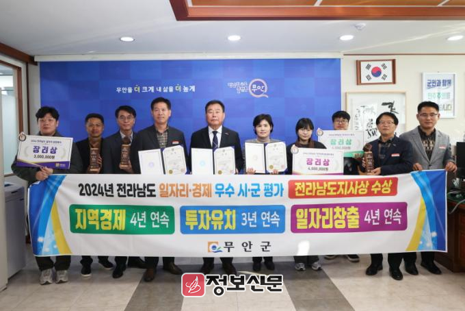 무안군은 이번 시상식에서 3개 분야 모두에서 장려상을 수상했으며, 특히 지역경제 활성화와 일자리창출 분야는 4년 연속, 투자유치 분야는 3연속 수상했다.