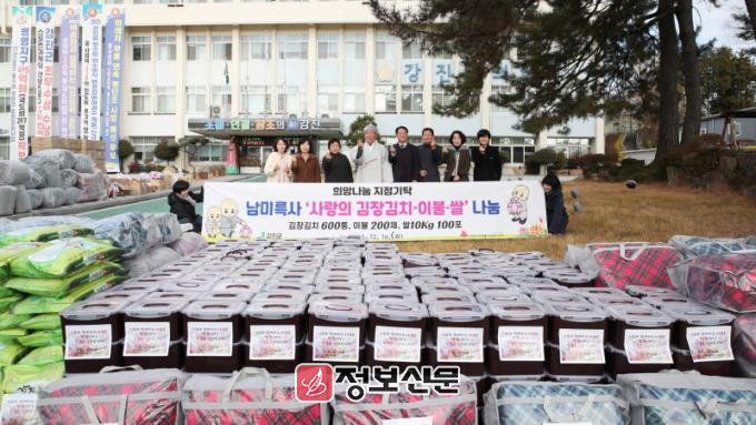 남미륵사는 매년 불자와 자원봉사자가 참여하는 초대형 김장 나눔행사를 진행해 왔다. 이번 기탁을 통해 김장김치 600통(7kg 기준), 이불 200채, 쌀 100포(10kg 기준)를 전달했다. 기부 물품은 공동모금회를 통해 지역 내 저소득 취약계층, 노인복지시설, 지역아동센터 등에 지원될 예정이다.