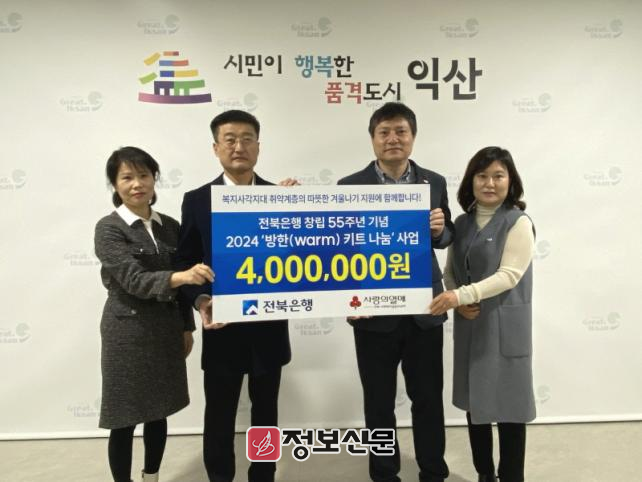 전상익 전북은행 부행장은 "어려운 이웃들이 따뜻하고 행복한 연말을 보낼 수 있도록 방한용품을 준비했다"며 "앞으로도 지역사회를 위한 사회공헌 활동을 지속해 나가겠다"고 말했다.