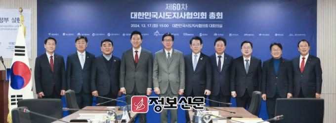 ![]() 김영록 전라남도지사(왼쪽 여섯 번째)가 17일 서울 대한민국시도지사협의회 대회의실에서 열린 ‘제60차 대한민국시도지사협의회 총회’에서 기념촬영을 하고 있다. |