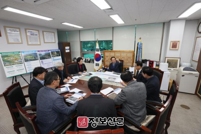 추진 상황 보고회는 심 민 군수, 설계사 대표, 관련 부서 담당자들이 참석하여 사업의 전반적인 진행 상황과 향후 일정, 설계 용역의 주요 내용에 대해 논의하여 사업의 성공적인 추진을 위한 협력 방안을 모색했다.