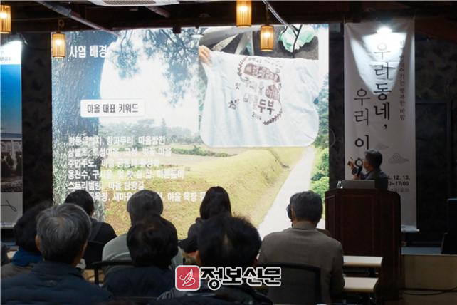 ▲홍문철 상귀리장은 「트멍트멍 정 담아가는 귀한 마을 상귀리」를 소개해 문화마을로써 도약하고자 하는 포부를 보였다. ▲고용주 와산리 개발추진위원장은 「신도 머물고 싶은 사랑품은 작지마을」을 소개하며 “풍부한 마을 자원을 적극 활용하겠다”고 말했다.