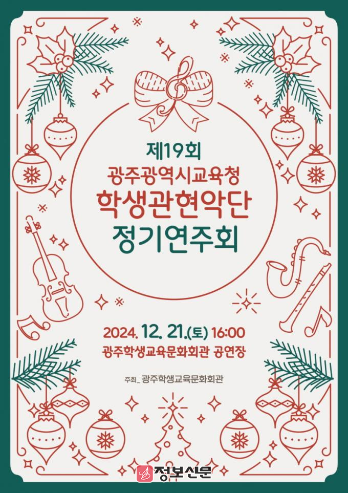 광주학생교육문화회관 정은남 관장은 “연말을 맞아 이번 연주회가 감동을 선사할 것으로 기대한다”며 “관현악단 학생들의 음악적 재능을 선보이는 자리인 만큼 많은 시민들이 오셔서 응원해 주시길 바란다”고 말했다.