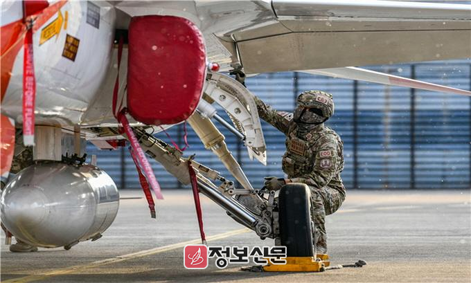 ![]() 공군 제1전투비행단은 12월 18일(수) 감찰안전실 주관으로 '24년 4분기 활주로 폐쇄 시 처리훈련을 진행하였다. 출동한 지상구조반 인원이 기체를 정비하는 모습. (사진 = 중사(진) 장석원) |