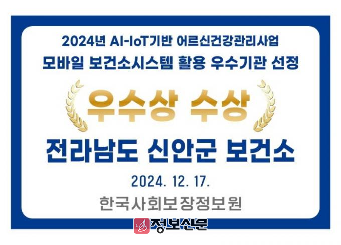 이번 수상은 신안군이 모바일 보건소 시스템을 적극 활용해 보건 담당자의 행정업무 부담을 줄이고 어르신 건강관리 효율성을 대폭 높인 점이 높은 평가를 받았다.