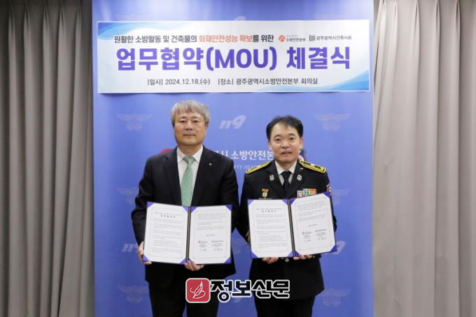 김문용 광주소방안전본부장은 “광주건축사회와 협약을 통해 건축물의 화재안전 성능을 확보해 시민의 생명과 재산 보호에 최선을 다하겠다”고 말했다.