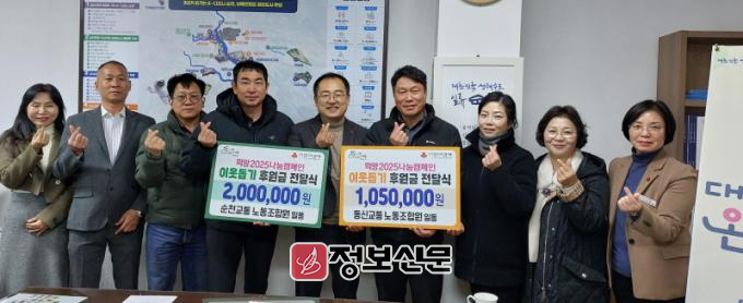 ![]() 순천시, 연말 희망2025나눔캠페인 온기나눔 이어져(순천교통 노동조합과 동신교통 노동조합) |