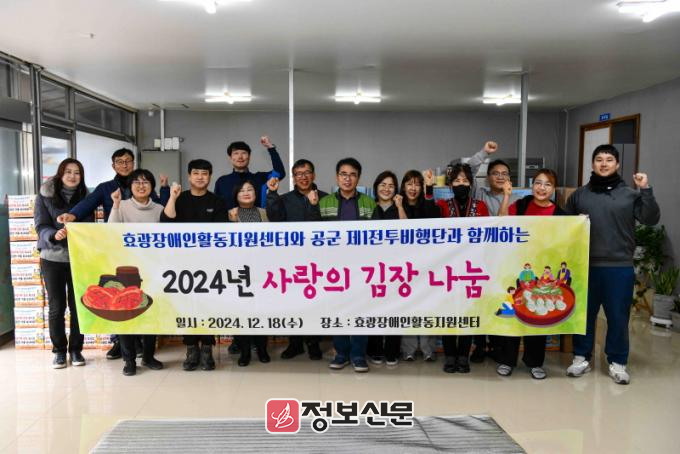 이번 행사는 지역주민과 함께하며 온정을 나누고, 이웃 사랑 정신을 실천하고자 계획됐다. 군무원단은 광산구 우산동 소재 효광 장애인 활동지원센터와 시온 장애인 보호작업장을 찾아 김장 봉사를 진행하는 뜻깊은 시간을 가졌다. 이날 담근 김치는 도움이 필요한 이웃에게 전달될 예정이다.