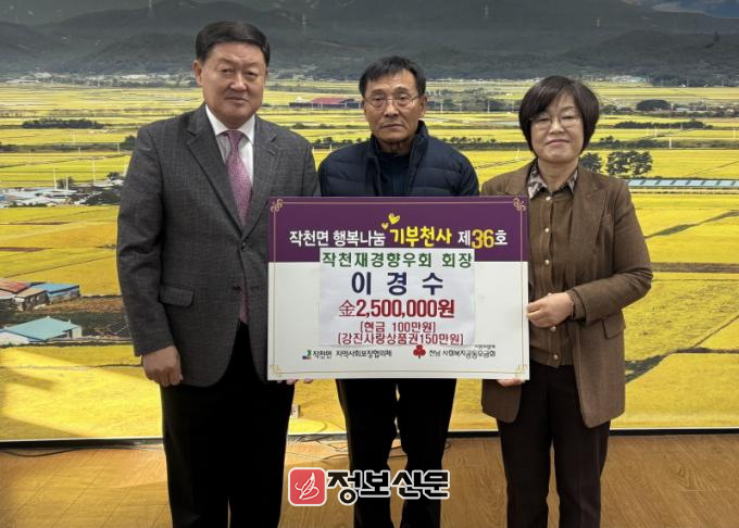 김수진 작천면장은 ”이경수 회장의 지속적인 관심과 나눔은 고향에 큰 힘이 되고 있다“며 ”기부금은 지역 사회 발전과 주민 복지 증진을 위해 소중히 사용하겠다“고 밝혔다.