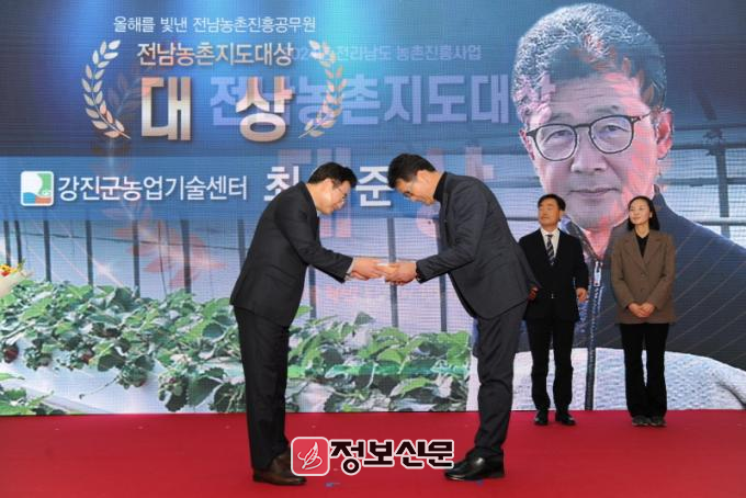 전남농촌지도대상은 농촌진흥사업에 대한 열정과 사명감으로 영농현장의 농업기술 개발 보급에 앞장서고 농촌진흥기관의 위상을 높인 우수공무원을 선발하는 상이다.