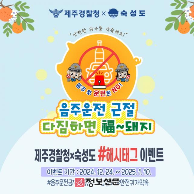 ![]() 제주경찰청, 연말연시 음주운전 근절 다짐하면 福~ 돼지 이벤트 진행 |