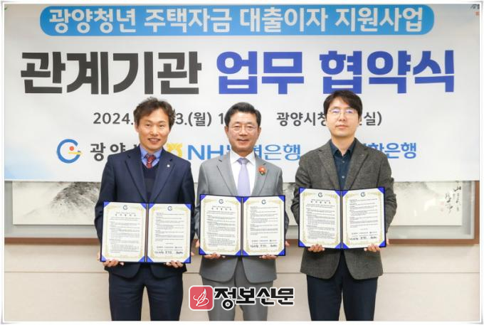 한편, 광양시는 이번 협약을 통해 19세~45세 이하의 광양시 무주택 청년들에게 최대 3%의 이자를 지원한다.