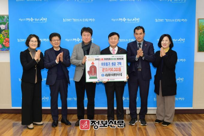이번 성금은 전남사회복지공동모금회에 지정 기탁돼 여수시 관내 저소득 가정과 사회복지시설을 위한 맞춤형 복지서비스 사업으로 사용될 예정이다.