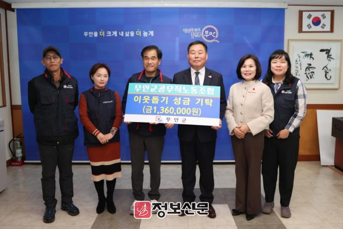 무안군 공무직노동조합은 지난 2023년에도 무안군에 100만원을 기탁하며 어려운 이웃들을 위한 나눔을 지속 실천하고 있다.