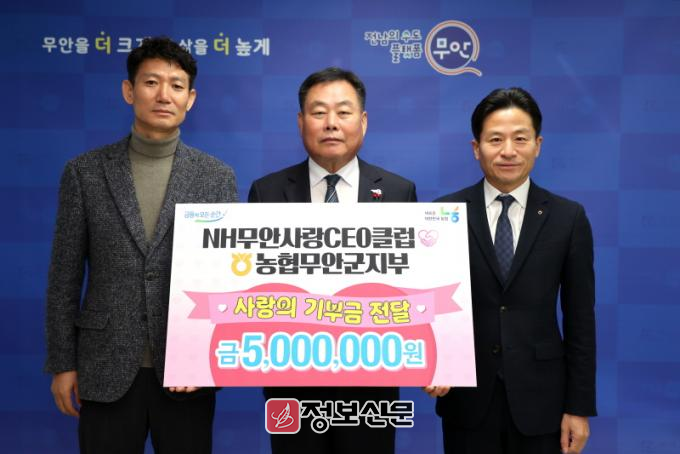 NH무안사랑 CEO클럽은 NH농협 무안군지부와 거래하는 관내 기업체 대표들의 모임으로 친목을 도모하고 지역경제 활성화를 위해 농협 무안군지부에서 조직한 단체로, 2022년과 2023년에도 각각 300만원을 기탁하며 지역사회와 함께하는 나눔문화 확산을 위해 매년 사회공헌활동을 펼치고 있다.