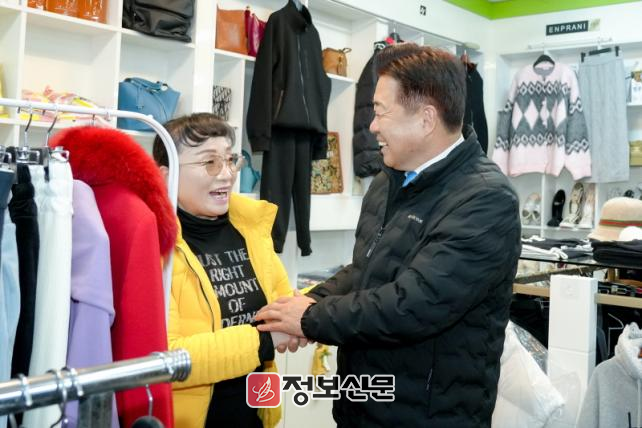 도남시장을 찾은 오영훈 지사는 상인들을 만나 시장 활성화 방안을 논의했다. 현장에는 한동수 제주도의회 의원과 강희경 도남시장 상인회장을 비롯한 관계자들이 참석했다.