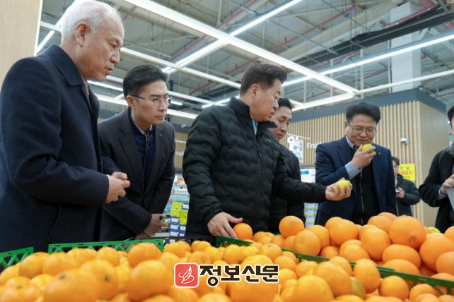 오영훈 지사는 23일 오전 도남시장과 제주농협 하나로마트 제주점을 잇따라 방문해 물가동향을 점검하고 상인들의 애로사항을 청취했다.