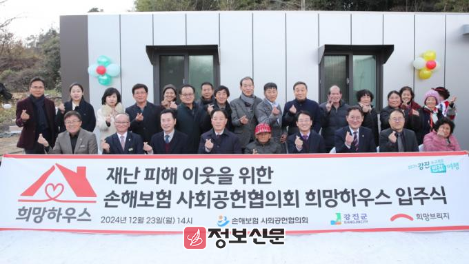 강진원 강진군수는 “피해 주민에게 안정된 주거를 지원한 희망브리지와 손해보험 사회공헌협의회에 감사드린다”라며 “강진군도 재난 피해 주민들의 일상복구를 위해 최선을 다하겠다”라고 말했다.