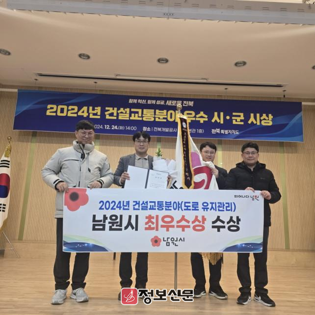 ![]() 남원시, 전라북도 도로유지관리 최우수상 수상 |