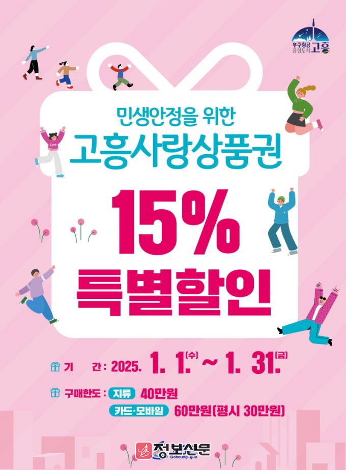 ![]() 고흥군, 민생안정 고흥사랑상품권 15% 특별할인 추진 |