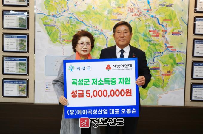 (유)케이곡성산업은 작년 성금 5백만 원을 기부하였으며, 오봉순 대표는 석곡면 독거노인을 위해 김장 김치를 지원하는 등 곡성군 저소득층을 위해 꾸준히 지원하고 있다.