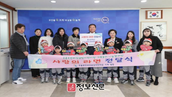 ![]() 무안군 오룡호반써밋공립어린이집, 사랑의 라면트리 나눔행사 열어 |
