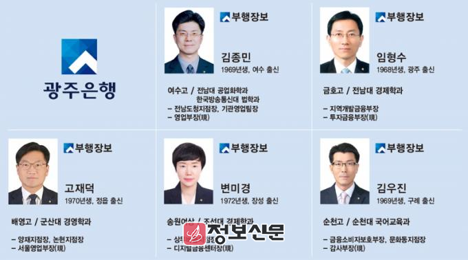 ![]() 광주은행, 영업력 강화 및 미래 경쟁력제고 위한 본부 조직개편 및 임원 인사 단행 |