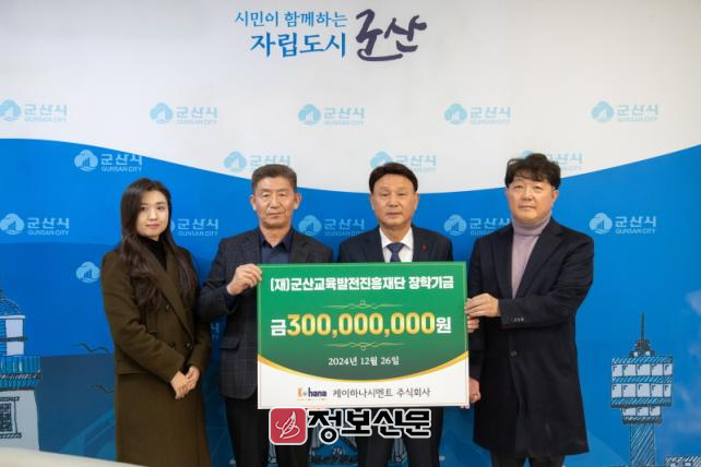 이번 기탁을 시작으로 케이하나시멘트(주)는 2025년부터 2027년까지 매해 1억씩 장학기금으로 군산교육발전진흥재단에 지원한다.