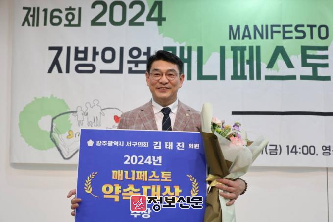 ![]() 광주 서구의회 김태진 의원, 2024 의정대상.매니페스토 대상 동시 수상[▲사진=서구의회 김태진 의원 제공]
