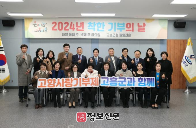 고향사랑기부제는 ㈜세진엔지니어링 박찬갑 대표와 고흥군 여성단체협의회(회장 김성숙)가 기부에 동참했으며, 전남사회복지공동모금회에는 지얼그룹 양병열 회장과 김현철치과 김현철 원장이, 교육발전기금에는 LX 한국국토정보공사 고흥지사(지사장 최태술) 직원들이 기부에 동참했다.