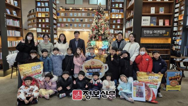 전주삼성어린이집 원생 27명과 교직원은 30일 전주시청을 방문해 1층 로비에 마련된 ‘전주함께라면 트리’ 기부함에 직접 모은 라면 300개를 기부하며 어려운 이웃을 위한 사랑의 손길을 더했다.