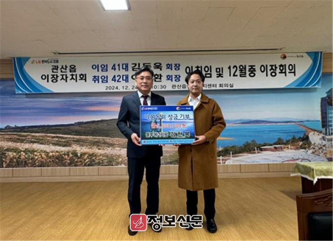 이 기부금은 어려운 환경에 처한 관산읍 주민들을 돕는데 사용될 예정이다.