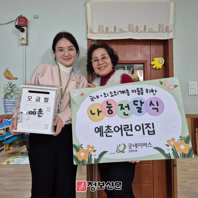 이번 전달식은 평소 개인 텃밭에서 정성껏 기른 채소를 이웃들에게 무상으로 나누어 준 따뜻한 마음과 이웃들의 사랑이 담긴 “무인텃밭”전달식이다. 채소를 받은 이웃들은 그 고마운 마음을 답례금으로 전하며, 그 마음이 모여 굿네이버스에 기부를 하게 되었다. 또한, 연말을 맞아 원아들이 모은 저금통도 함께 기부되어, 아이들의 따뜻한 마음이 더욱 큰 나눔으로 이어졌다.