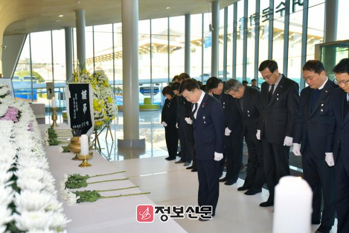![]() 정기명 여수시장이 간부공무원과 31일 오전 여수문화홀 로비에 마련된 제주항공 여객기 사고 희생자 합동분향소를 찾아 조문했다.