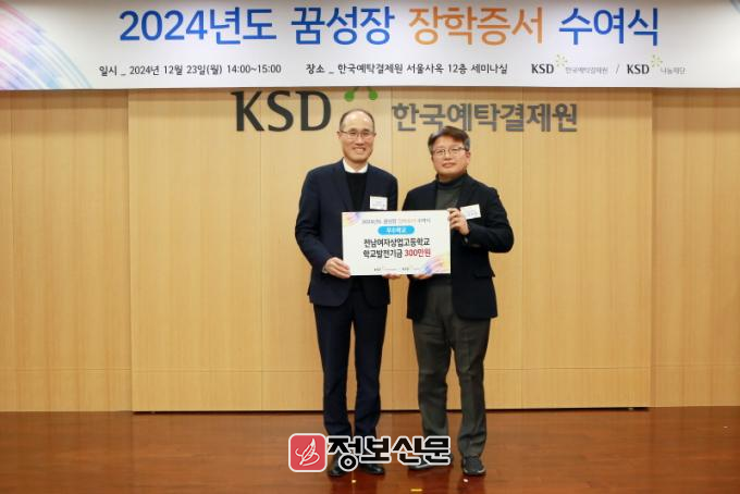 KSD 꿈성장 장학사업은 특성화고 학생들을 대상으로 실시하는 금융·경제 이해력 측정 시험에서 우수한 성과를 거든 학교와 학생에게 학교발전기금과 장학금을 지원하는 사업이다.