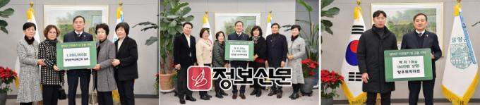 담양군은 담양군여성축산회(회장 신남순) 현금 100만 원, 한국국토정보공사 담양지사(대표 최광욱) 온누리상품권 30만 원, 담양읍 농가주부모임(회장 신부자) 백미 20kg 20포(110만 원 상당), 양우회빅마트(대표 김경진) 백미 10kg 20포(60만 원 상당)를 기탁했다고 전했다.