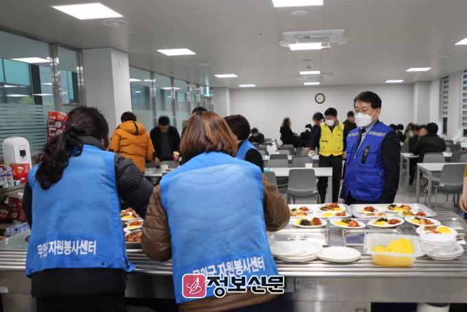 ![]() 무안국제공항 구내식당에서 식사를 준비하고 있는 무안군 자원봉사자들