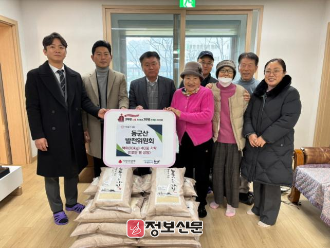 동군산발전위원회 관계자는 “이번 기부는 단순한 나눔을 넘어 신역세권 지역 어르신들의 생활 환경 개선과 복지 지원을 목표로 한 실질적인 지원의 일환.”이라고 설명했다. 이어 “앞으로도 신역세권 지역 발전과 주민 삶의 질 향상을 위한 다양한 활동을 이어갈 계획.”이라고 덧붙였다.