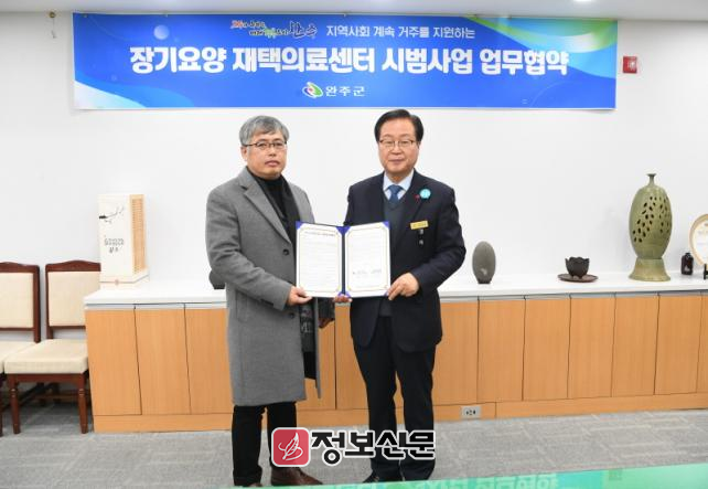 완주군은 지난해부터 고산성모의원과 업무협약을 체결해 장기요양 재택서비스를 제공했고, 이번 업무협약으로 올해 3차 시범사업을 추진한다.