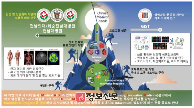 전남대가 주관기관으로 지스트가 공동기관으로 구성된 컨소시업은 의료인공지능과 면역치료에 특화된 의사과학자를 양성하는 교육프로그램을 공동으로 개발하게 된다. 컨소시엄의 명칭은 ‘MAXIIMUM(Medical AI-X, Immunotherapy-based Innovative Medicine for Unmet Medical Needs)’이며, 의료의 미충족 난제를 인공지능과 면역치료로 극복하는 첨단 융·복합 의사과학자를 양성하는 것이 목적이다.