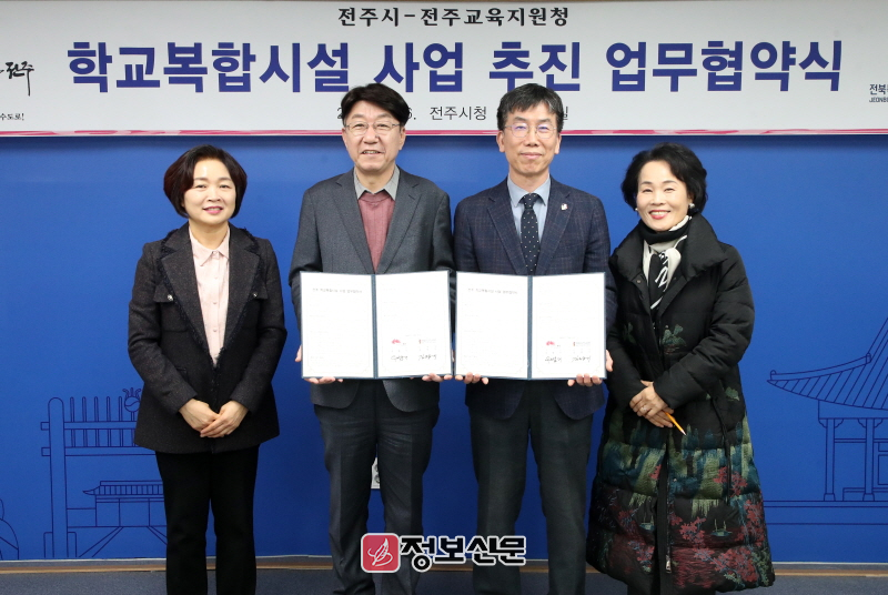 전주시와 전주교육지원청은 6일 시청 3층 회의실에서 우범기 전주시장과 김정기 전주교육지원청 교육장 등 양 기관 관계자들이 참석한 가운데 ‘학교복합시설 사업 추진을 위한 업무협약’을 체결했다.