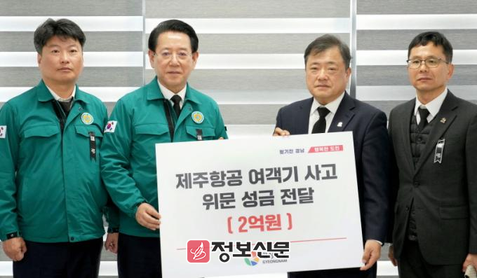 김동연 지사는 “갑작스러운 사고로 실의에 빠진 유가족들께 위로의 말씀을 전한다”고 말했다. 또 2일 경남도는 박명균 행정부지사를 단장으로 한 경남도대표단이 무안공항 분향소를 찾아 2억 원을 지정기부처에 맡기기로 했다. 박명균 부지사는 “경남도의 지원이 고통을 겪는 유가족들께 조금이나마 힘이 되길 바란다”고 밝혔다.