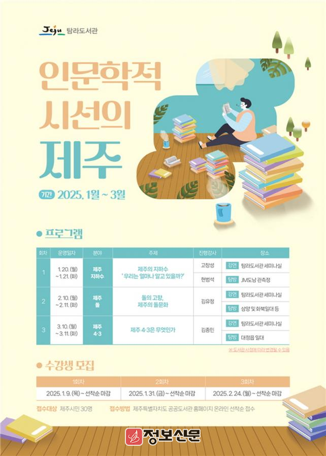 ![]() 탐라도서관,‘인문학적 시선의 제주’참여자 모집 |