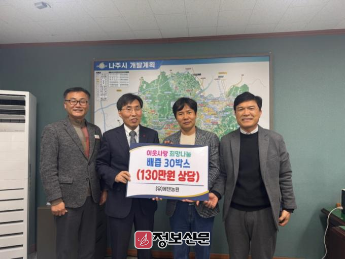![]() (유)에덴농원, 나주시 아동복지시설에 배즙 30박스 후원 |