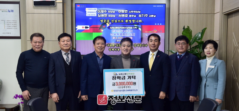 8일 한국전기공사협회 전북특별자치도회와 김제시 환경미화원 봉사단은 각각 3백만원, 2백만원의 장학금을 기탁했다.