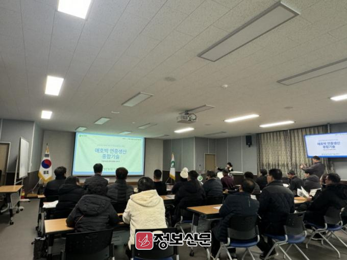 이번 교육은 애호박의 연중 생산 체계 구축과 재배 기술 향상을 목표로, ▲하우스 관리 ▲대설·한파 대비 등 실용적이고 현장 중심적인 내용을 다뤘다.