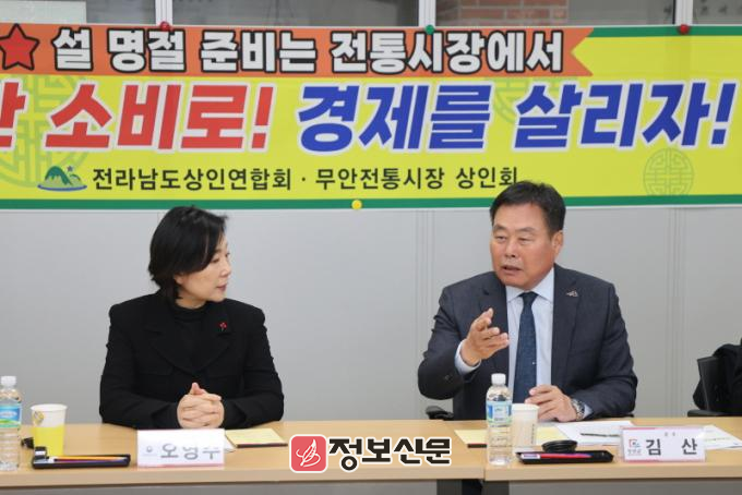 이날 간담회에는 오영주 장관, 김산 무안군수, 한승주 전국상인연합회 전남지회장, 문정수 무안전통시장 상인회장 등 20여 명이 참석했다.
