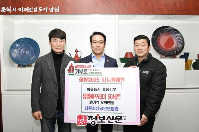 ![]() 남원시 소상공인연합회, 생필품 꾸러미 50세트 기부 |