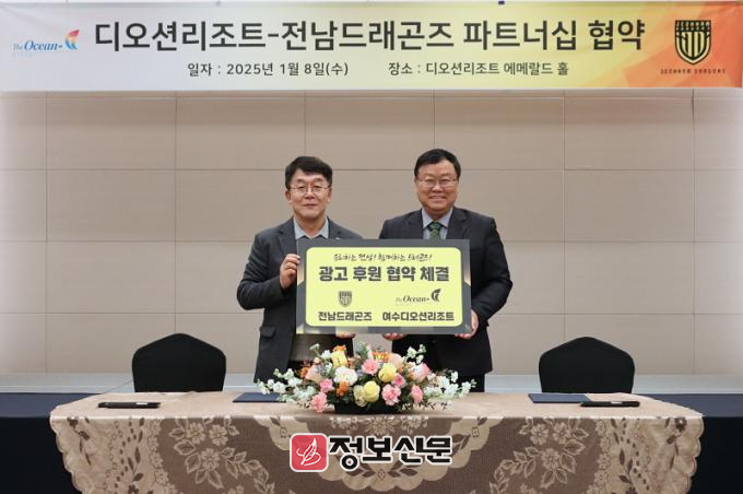 전남 여수에 위치한 디오션리조트 에메랄드홀에서 진행된 협약식에는 유광현 디오션리조트 대표와 김규홍 전남드래곤즈 대표이사를 비롯한 양측 관계자 10여 명이 참석했다. 양사는 전남드래곤즈의 K리그1 승격과 지역 사회를 위한 공익활동을 중심으로 한 협력 강화에 뜻을 모았다.