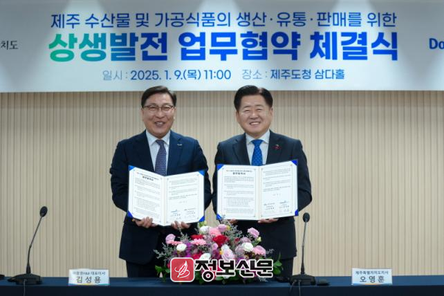 제주도는 9일 오전 11시 도청 삼다홀에서 ㈜동원F&B와 ‘제주 수산물 및 가공식품의 생산·유통·판매를 위한 상생발전 업무협약’을 체결했다.